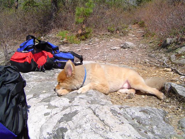 Duncan decided he was not going to come to me to get his pack back on after morning break so he’ll be on the leash for the rest of the trip.