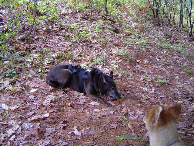 Ackey chews on a BIG chunk of backbone she found…I hope it wasn’t a past hiker.