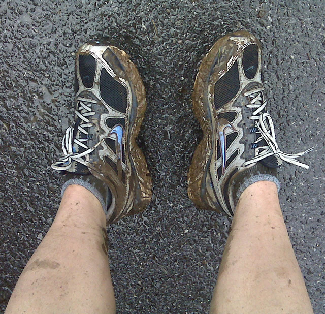Went out for a trail run this morning. It was raining, cold, and miserable. Perfect conditions for the Mt. Penn Mudfest 15K Trail Run!!! Spent 2 hours romping in the woods hurdling over and limbo-ing under blowdowns, sliding in mud, skirting around deer carcasses – that was really disgusting! – climbing mudslides on hands and knees, rinsing off the accumulated mud in stream crossings, fueling up at beer, cheese ball, and marshmallow peeps stations, and just generally having a good time. Great way to end the Reading trail season. Can’t wait till next year.